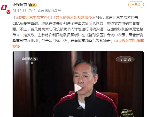 北京时间12月13日,北京男篮新赛季首战对阵江苏男篮,北京男篮引进中国男篮队长赵睿,但曾凡博尚未回归球队。北京男篮主帅许利民表示,到目前为止曾凡博还没有和球队沟通好,而赵睿是因为看到他蜕变为一位精神领袖球员。