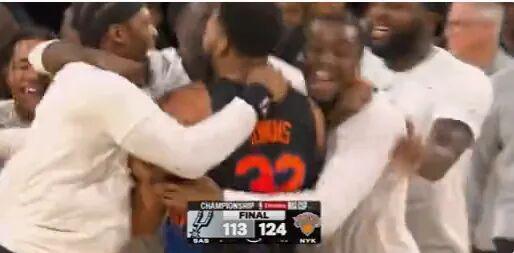 尼克斯球员高兴坏了,像夺冠一样开心。