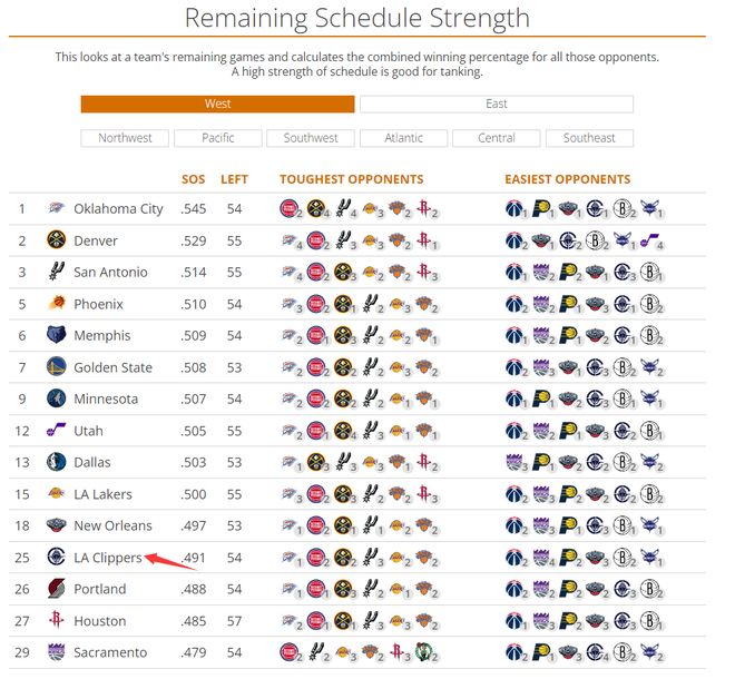 余下的54场比赛,快船的赛程难度是联盟第25,说实话这个赛程算较为轻松了,对手平均胜率只有49.1%,但没有球迷觉得快船可以做到。
