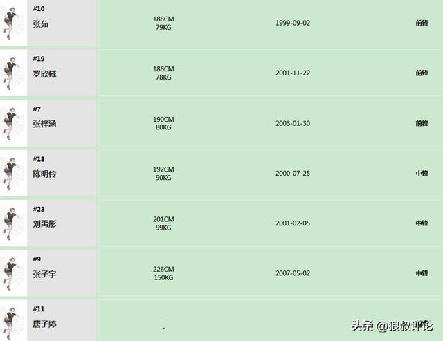 前锋:杨舒予,孙宇,李星诺,张茹,罗欣棫,张梓涵,唐子婷