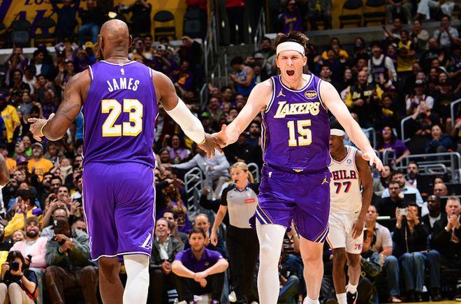 湖人主场迎战76人,76人方面乔治禁赛,湖人方面海斯禁赛,新援肯纳德无法出战,东契奇打了16分钟伤退,76人前三节占据上风,一度领先14分,三节战罢领先2分,第四节里夫斯开局连得8分,带领湖人反超6分,随后湖人一度把分差扩大到16分,76人没有崩盘,他们一度把分差追到2分,但无力回天,最终湖人119-115击败76人。里夫斯17中12(三分8中5)砍下35分6板2助,詹姆斯17中7得到17分4板10助,76人方面恩比德19中13得到35分7板7助2帽,马克西22中11得到26分13助4断。