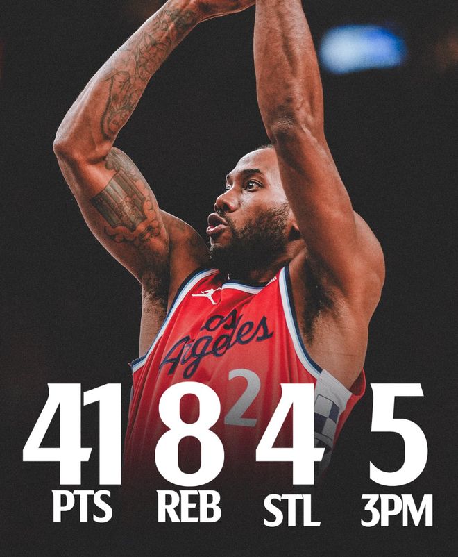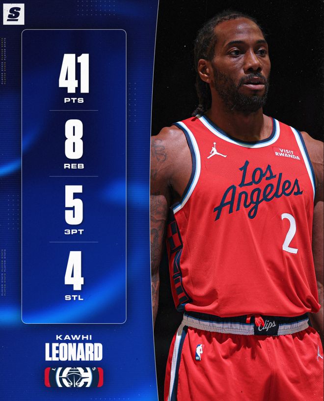 4.伦纳德赛季第四场40+生涯新高;