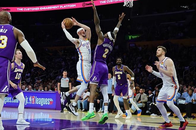在此前的一场NBA常规赛中,俄克拉荷马城雷霆经过苦战后以119比110战胜了主场作战的洛杉矶湖人。本场比赛后,结束了两连败的雷霆的战绩提升到了41胜13负,继续排名西部榜首位置,与身后的圣安东尼奥马刺的胜场差为4场;而结束了3连胜的湖人的战绩则是下滑到了32胜20负,继续排名西部第5位,与身前的休斯顿火箭和身后的明尼苏达森林狼的胜场差均为半场。