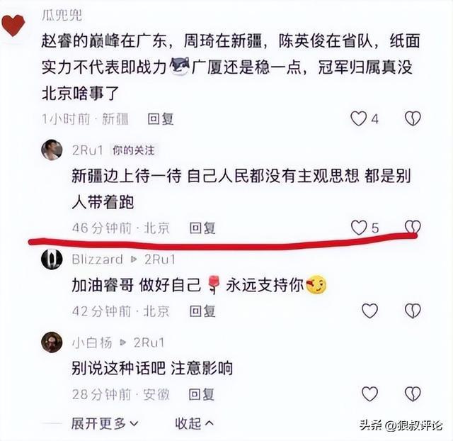 北京对阵青岛的比赛,赵睿整体表现欠佳,在社媒引起了一部分球迷吐槽,赵睿仿佛心情欠佳,在社媒与球迷互动当中,出现了一些偏激的情绪表达引发球迷不适,特别是涉及到部分新疆球迷。