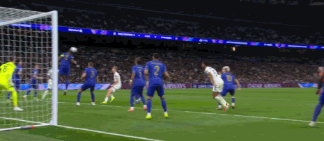 第32分钟,差一点,特泽兜射击中横梁弹出