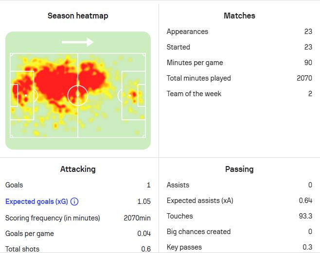 尽管偶有的失误,数据显示,范戴克在本赛季仍是一名稳定球员的观点。