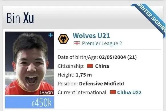 此前在U23亚洲杯表现出色的U23国足队长徐彬,以自由转会的方式加盟了狼队U21。徐彬现年21岁,司职后腰,2022年在广州队完成中超首秀,2025年1月徐彬自由身加盟青岛西海岸。