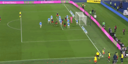 第40分钟,左路底线附近传中,马鲁西奇甩头攻门稍稍高出