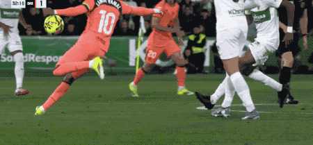 开场仅仅6分钟,接到奥尔莫的直塞,亚马尔潇洒晃过门将,将球打进。