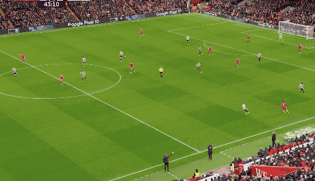 第43分钟,阿利松大脚开球,埃基蒂克打出身价,行进间捅射,梅开二度。