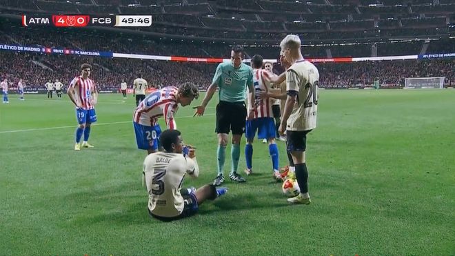 第33分钟,马竞利用同样的反击,右边路打穿巴尔德,禁区插上的卢克曼劲射破门,3:0!马竞进一步扩大比分优势。紧接着弗里克用莱万换下卡萨多,将费兰托雷斯拉回到边路。补时阶段的第2分钟,卢克曼倒三角回传,跟上的阿尔瓦雷斯再度破门,4:0!半场比赛,直接把巴萨打崩溃了。