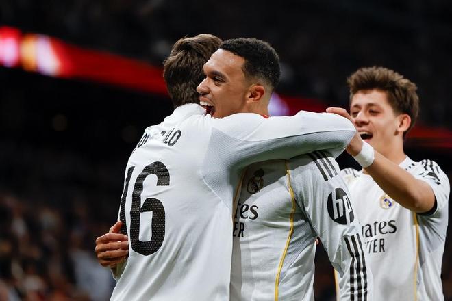 在欧冠被本菲卡绝杀后,皇马回到联赛层面没有继续保持着对于巴萨的压力,银河战舰上次在西甲输球还是阿隆索带队的时期。由于在国王杯8强爆冷出局,皇马得到了一周的休息时间,本周末西甲第24轮,皇马在伯纳乌与皇家社会展开交锋;贡萨洛-加西亚先拔头筹,姆巴佩2次点球命中,巴尔韦德锦上添花,皇马4:1拿下迎来一波西甲8连胜。