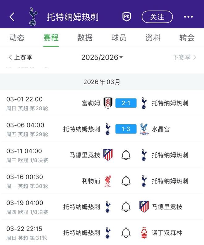 北京时间3月6日,英超第29轮,托特纳姆热刺1-3水晶宫。在本场比赛之后,热刺将迎来一段艰难的赛程。