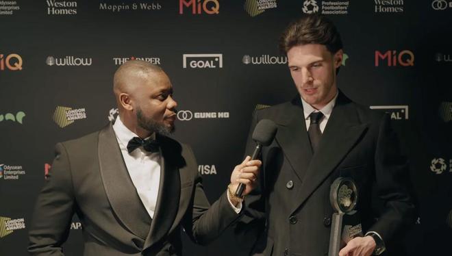 阿森纳球员赖斯当选了伦敦足球奖年度最佳球员,颁奖典礼后接受了采访。